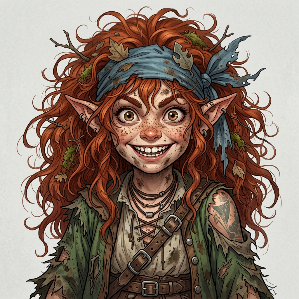 Not many kids can say they were kidnapped by a witch and lived to tell the tale, but Mighty Sprout didn’t just survive… she got returned. She’s all grown up now with wild eyes and hair to match, Sprout charges headfirst into danger, curiosity blazing brighter than her better judgment. Spunky, rambunctious, and just a little unhinged, Mighty Sprout is here to prove that sometimes the most dangerous thing in the room… is the smallest.