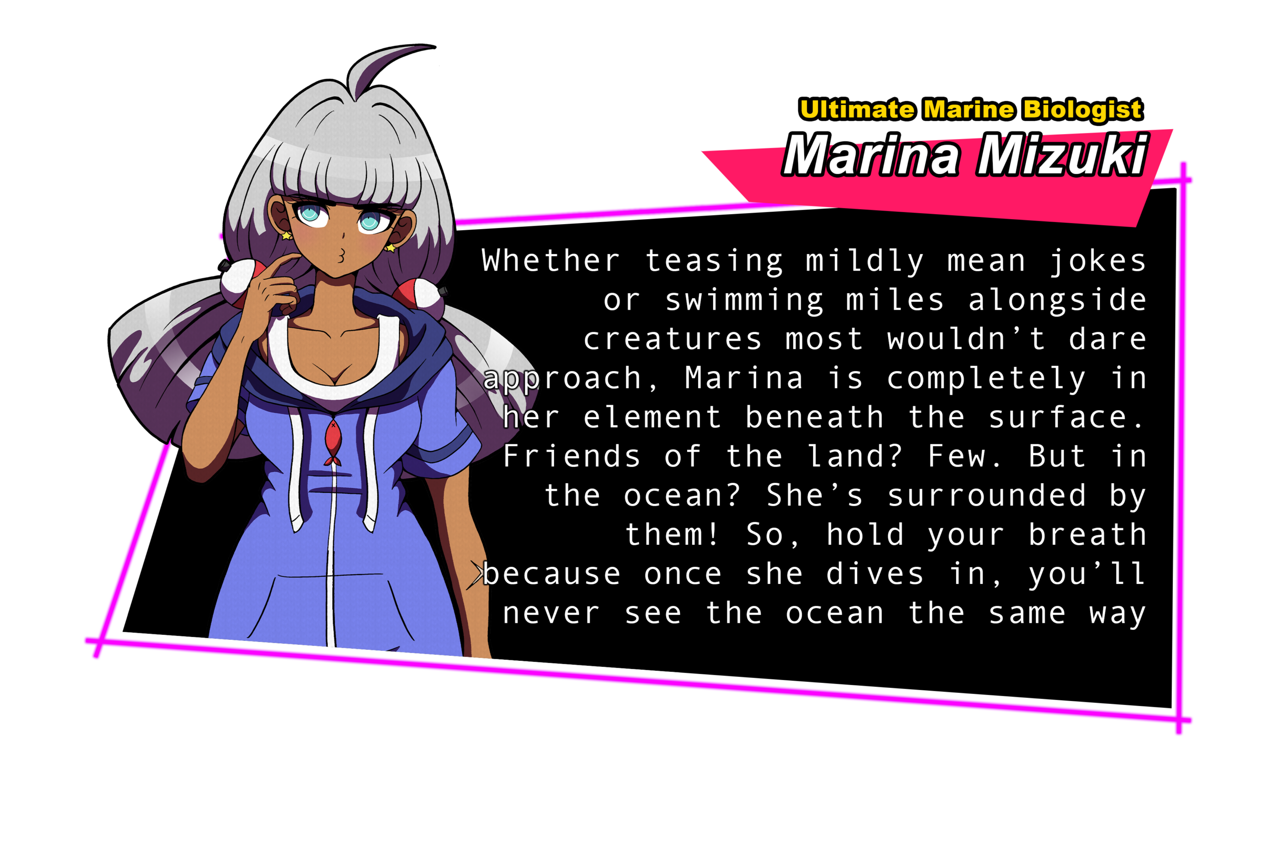 (Danganronpa is a Japanese Murder-Mystery video game where high school students are trapped in a school forever. If a student wants to escape the school, they must MURDER another student and get away with it. If a murder occurs, the other students must gather evidence and hold a class trial where they figure out who the murderer (the blackened) is. If they are successful, the blackened will receive punishment from the high school headmaster, Monokuma. If they fail to find the blackened, the entire class will be punished instead.)